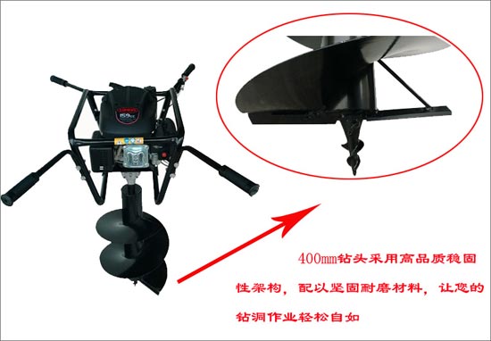 產品特點:采用四沖程159CC大馬力發動機,適合長時間大量工作,帶400MM鉆頭使用。其他型號小鉆頭都可以用。